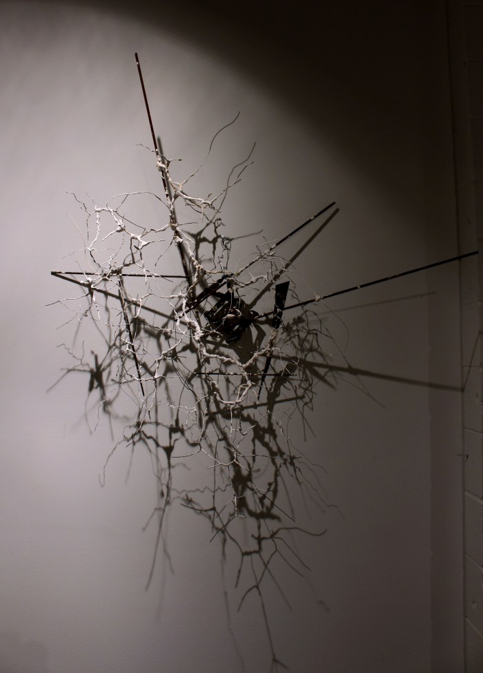 - Symbiosis Series 2 – #1 – Found Metal, Steel Wire, Gypsum Cement, Steel Shavings, and Varnish – 39 x 43.5 x 19.75″