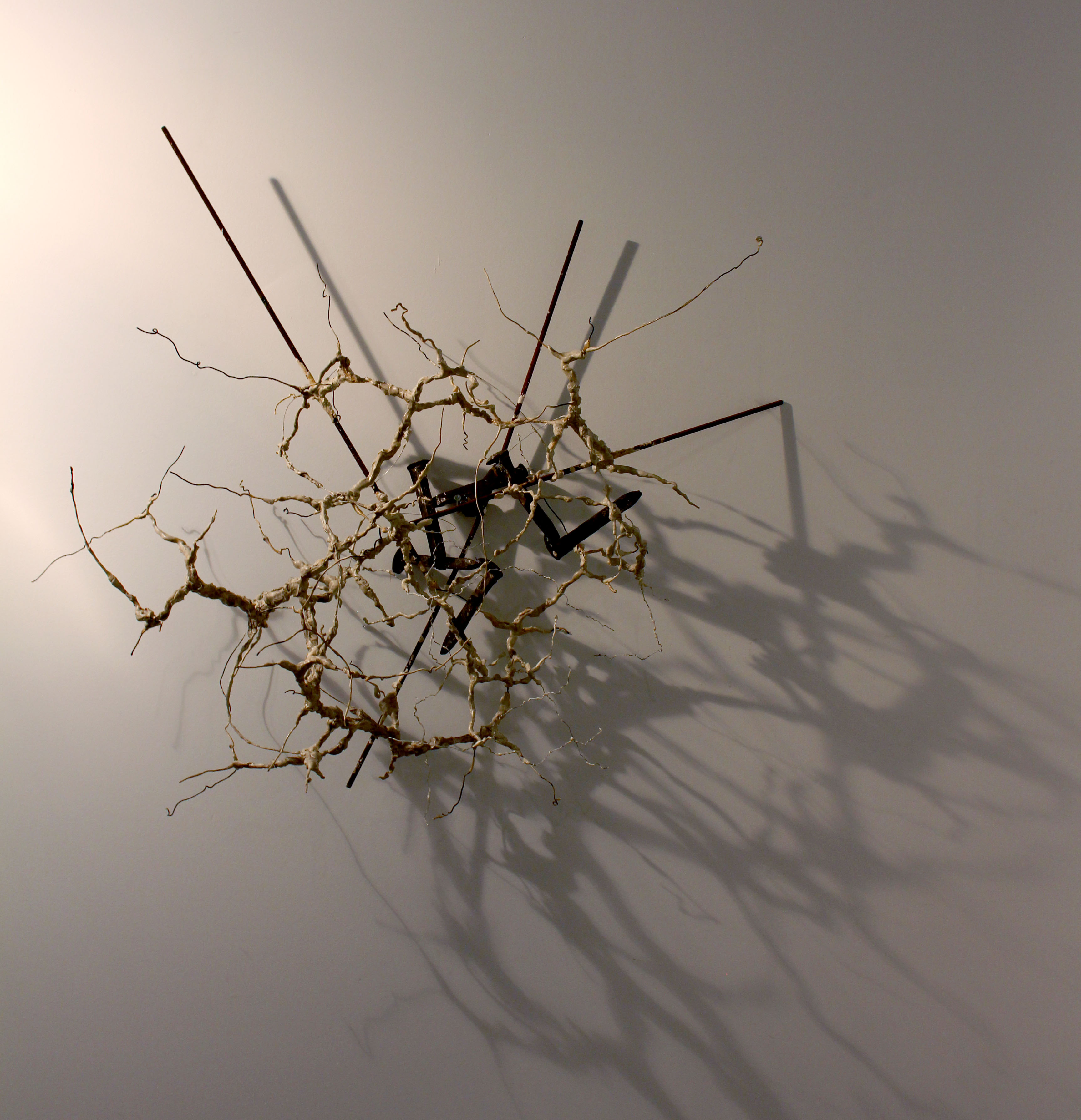 - Symbiosis Series 2 – #3 – Found Metal, Steel Wire, Gypsum Cement, Pigment, Linseed Oil, Steel Shavings, and Varnish – 29.75 x 24.5 x 52.75″
